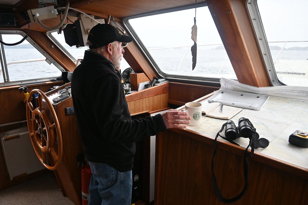 Jim Borrowman cut the engine of the Nisku in the gray water of the Johnstone Strait, relinquishing his boat to an eastbound tide. He unraveled the line of a hydrophone – a cylindrical, underwater microphone – and dropped it portside.