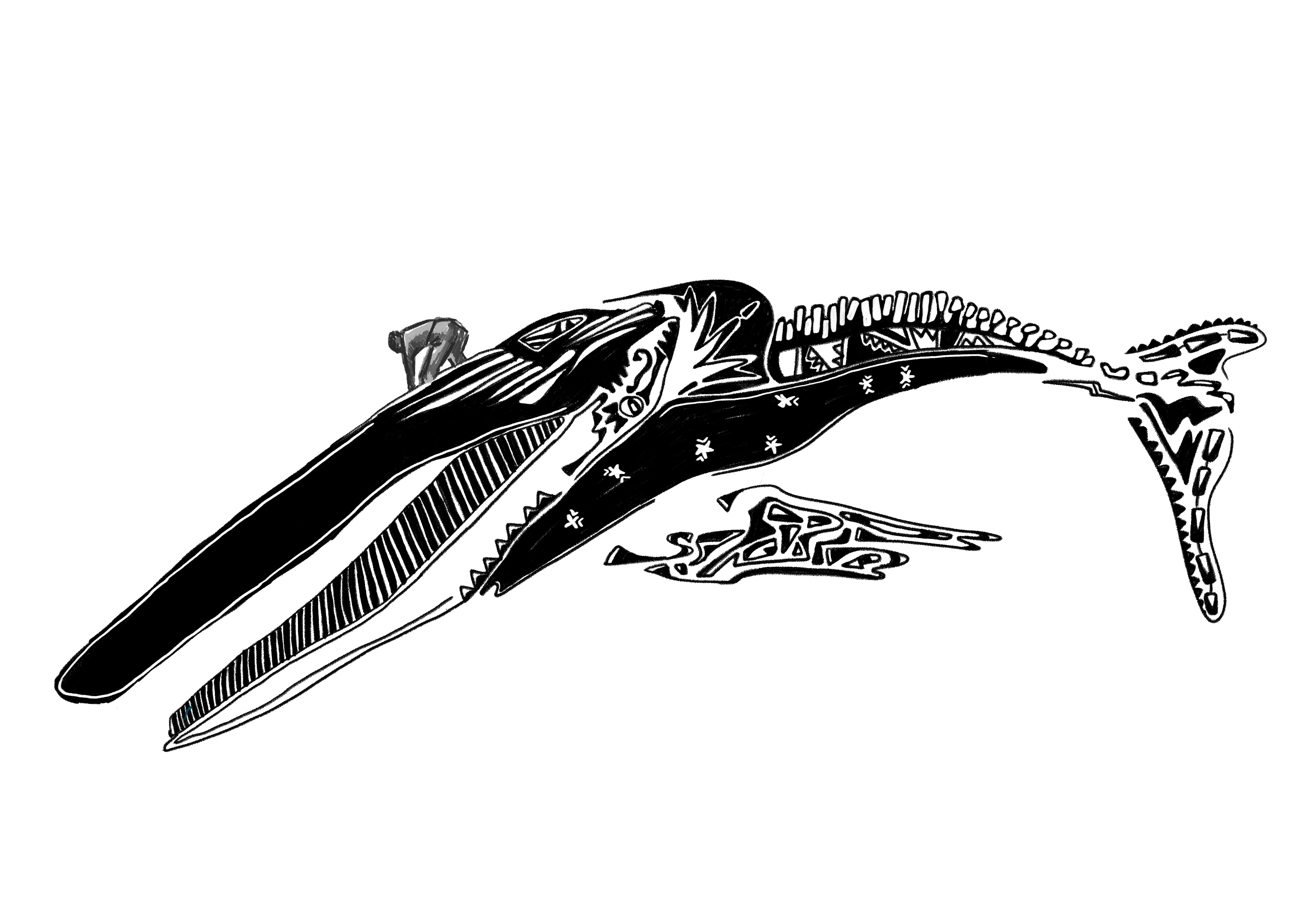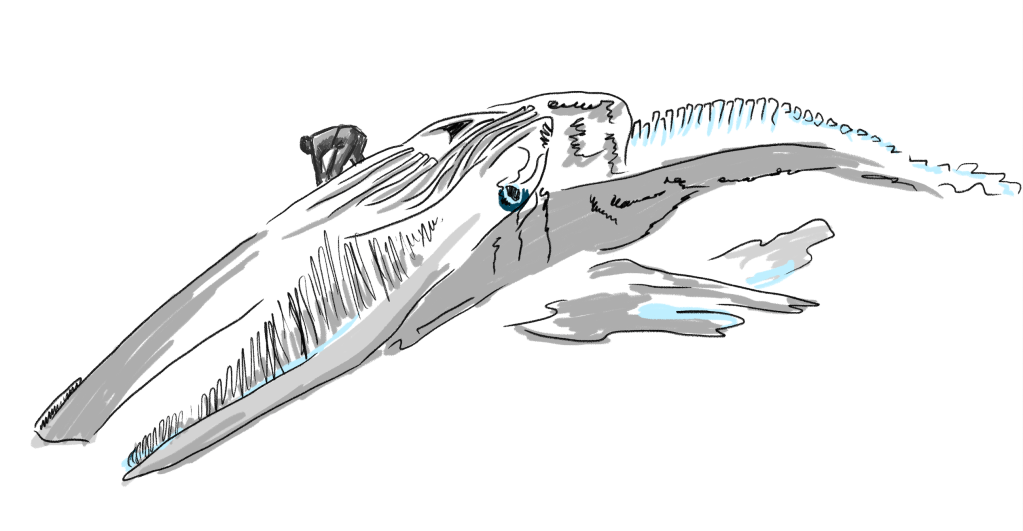 Concept sketch and audio clip from my in-progress animation featuring Jim Borrowman, who has cleaned and saved dozens of whales skeletons for historical preservation.
