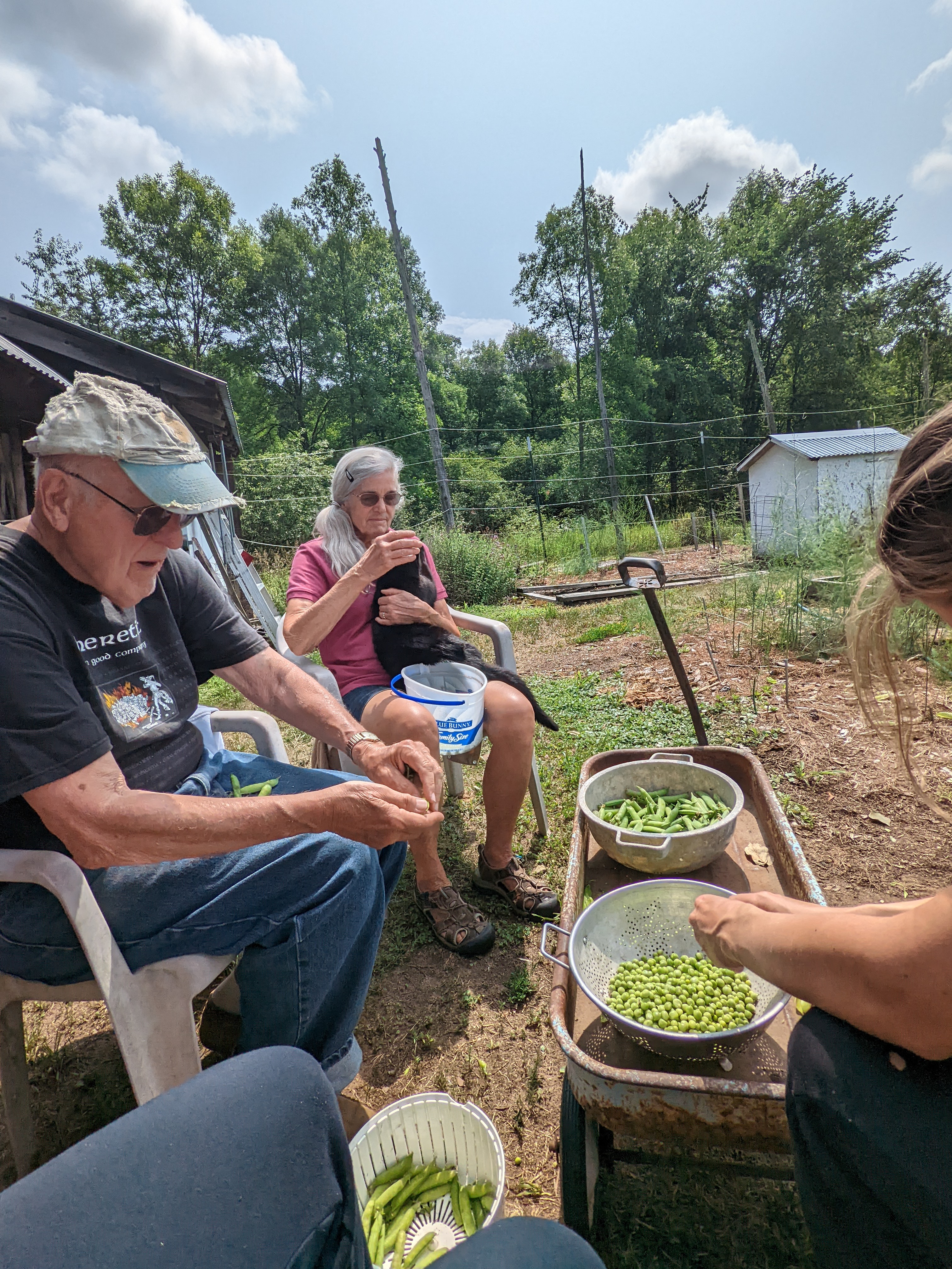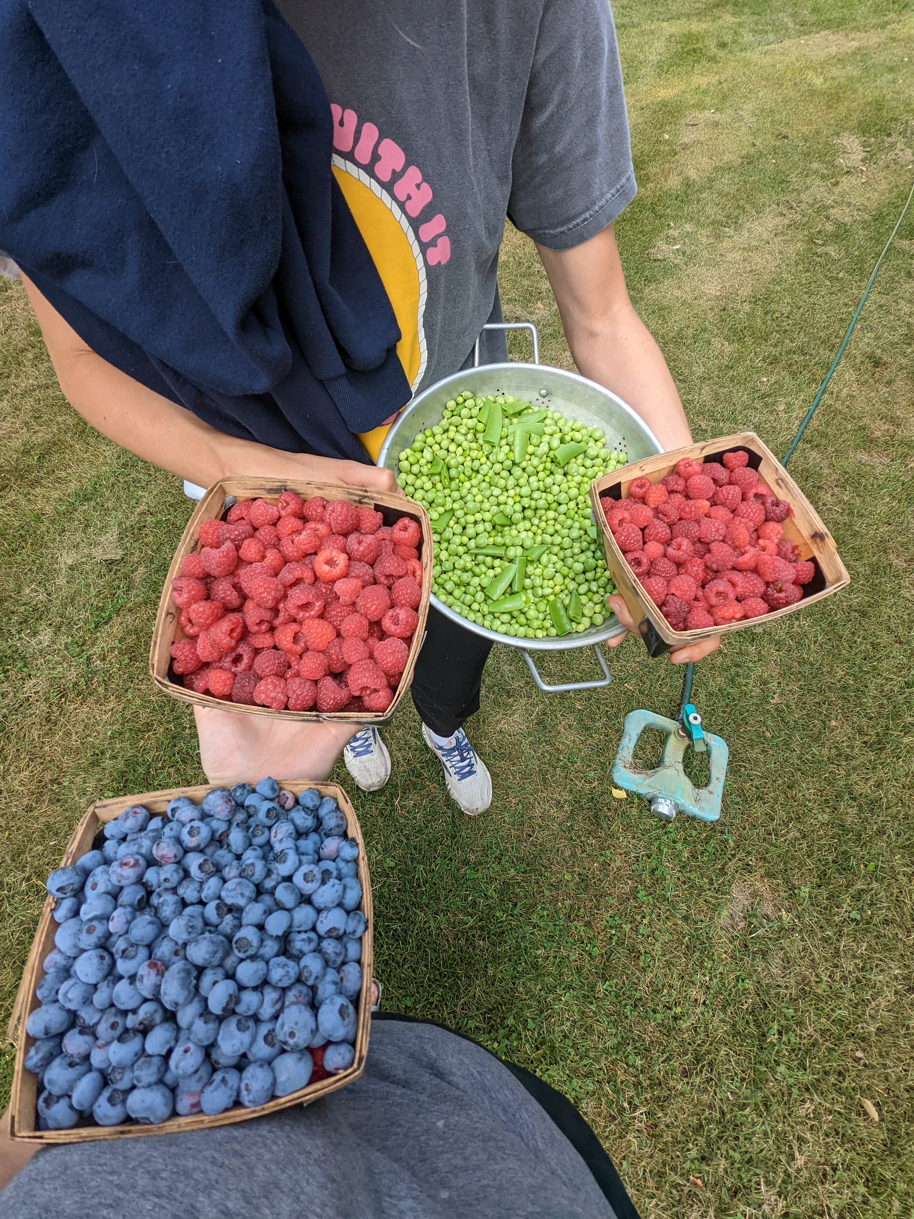 We got to Big Falls (pop. 59) a little bedraggled. My friend’s grandparents, Jane and Stephen, have a beautiful house on 150 acres of land there. They’ve got a sprawling garden with everything you could imagine: apples, pears, radishes, Brussels sprouts, lettuce, carrots, cabbages, you name it. We spent a few mornings shelling peas and rooting around in the blueberry bushes. This year they’re hoping for 150+ quarts of blueberries ($4 a heaping quart, unless grandchildren and company have eaten them all).