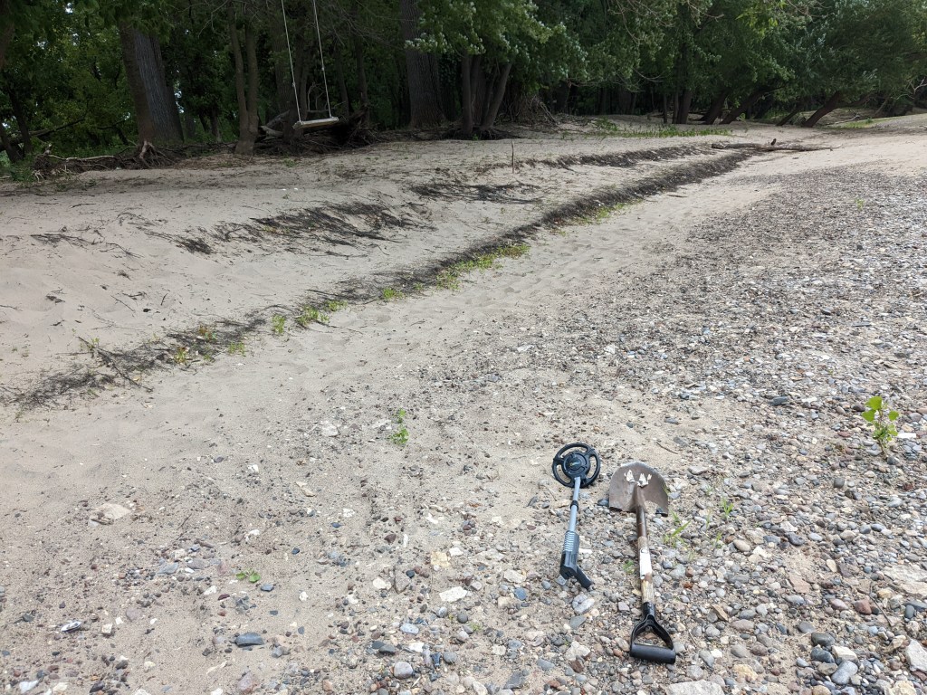 I rented a paddle-share kayak on the last morning there and paddled 7 miles down the Mississippi. There are birds all over the shore, and one cormorant (maybe? I’m no birder.) poked its head up next to me while I was floating by. I must have startled it because it dropped its fish. I paddled up to one island with a rope swing hanging from the trees and rested my arms a bit. There was a metal detector (working, I tested) and shovel lying on the beach, but no one around. Spooky?